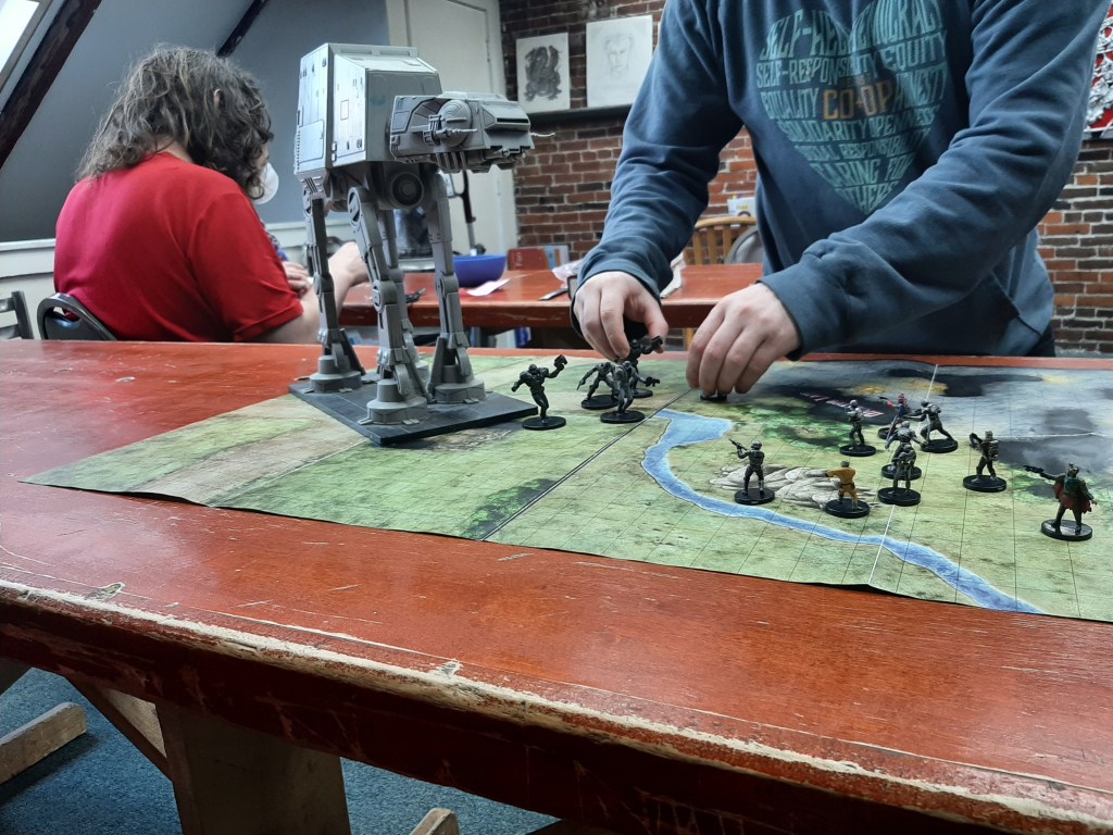 This April Vacation at the Loft, we got outside to enjoy the changing weather with the start of Live Action Combat season. Rio ran an epic Star Wars miniatures battle that all came down to a square off between the Imperial Forces and a small, scrappy troop of bounty hunters. In the end, Henry’s massive Imperial army managed to overwhelm the bounty hunters and claim victory! The week was capped with a special Pax Britannica event hosted at First Baptist Church (more to come on that soon), and a treat of blueberry pie for Friday night dessert.