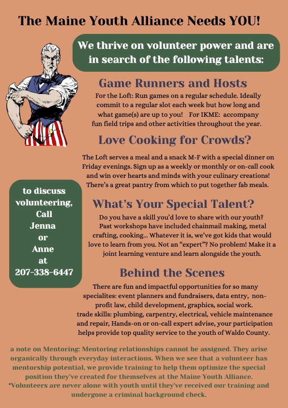 Supporters in the community and program member Guardians can work directly with each of the Maine Youth Alliance programs or provide support by working together with The Game Loft or I Know ME Community Action Boards. Consider becoming an active member of our Guardian Booster Pack to bring your expertise and enthusiasm to program operations or even become a CAB member and leader.